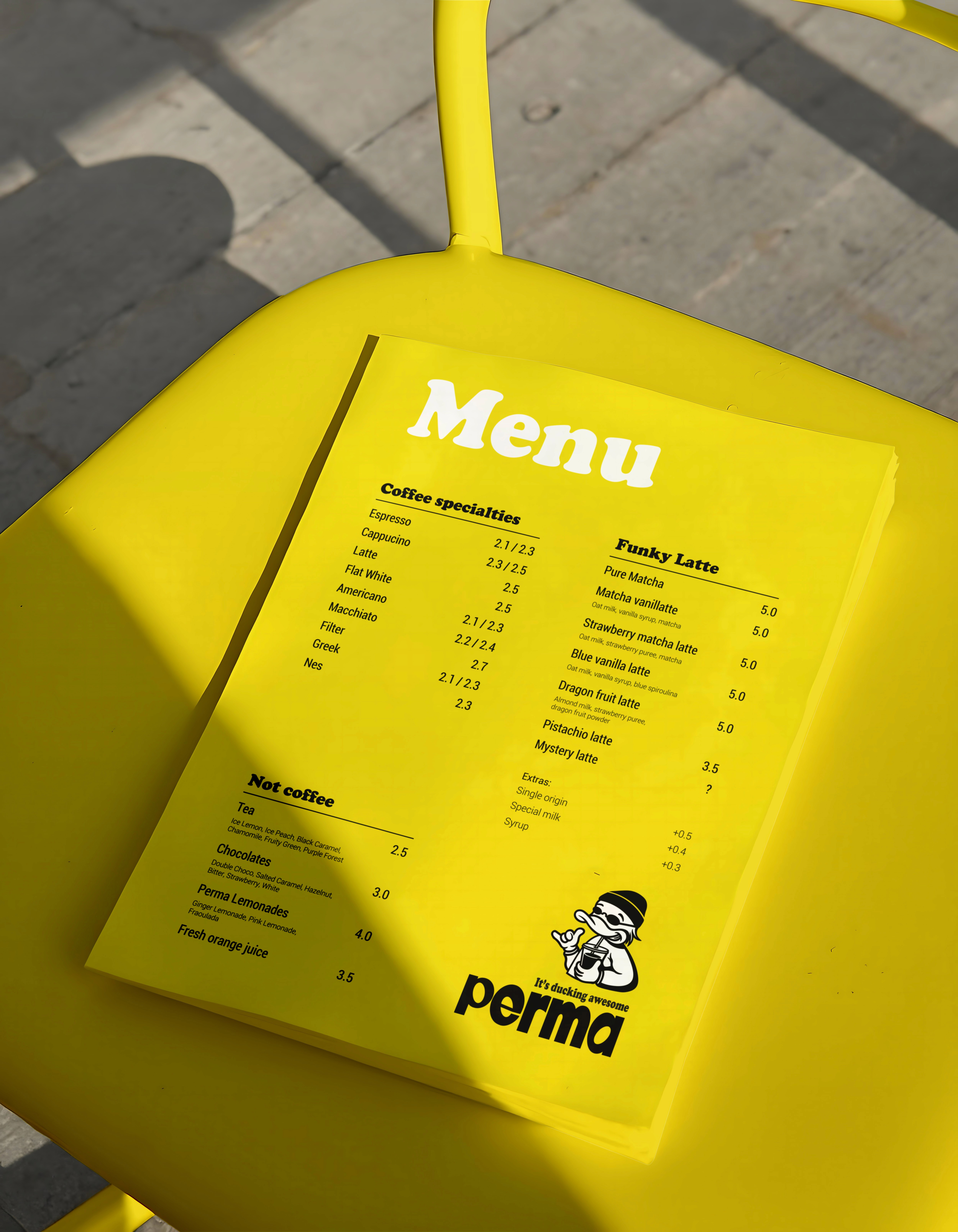 We designed logo variations featuring PERMA’s signature duck for seasonal campaigns and special events, alongside posters, stickers, and merchandise that capture the café’s creative, community-oriented character. Our work also extended to brand collaborations, including the PERMA × New Cult partnership, where we provided creative direction and visual support to ensure a cohesive, on-brand experience across both identities.